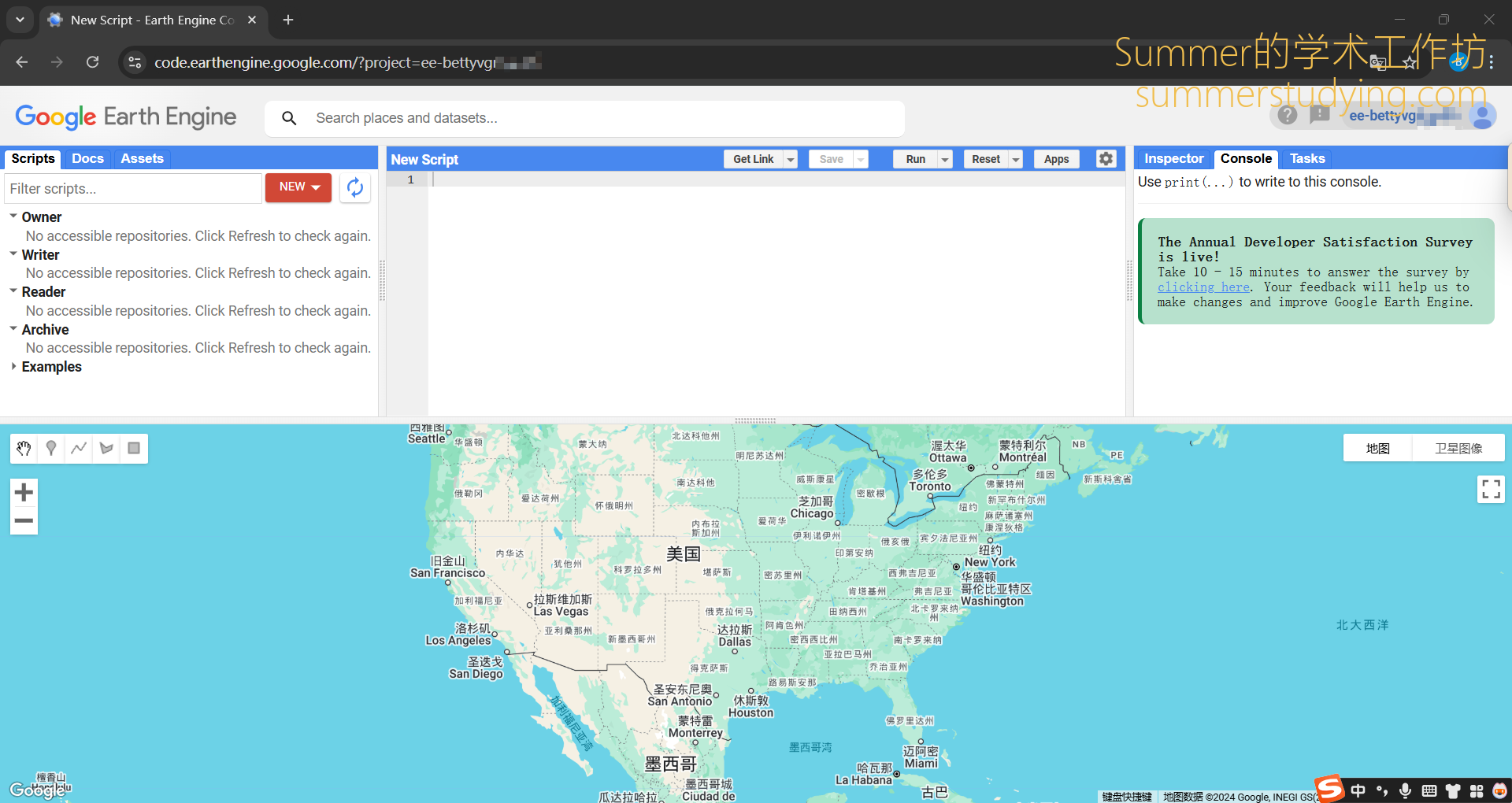 3.8看到这个界面即是完成GEE登录!大家尽情享用GEE吧!